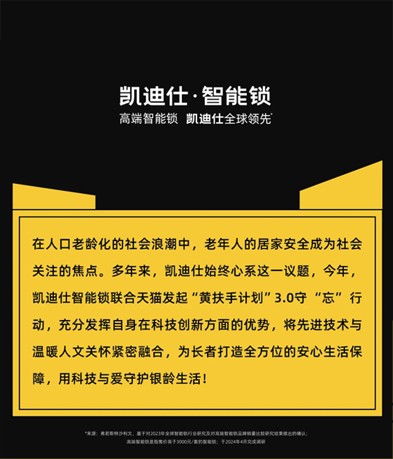 凱迪仕聯(lián)合天貓發(fā)起“黃扶手計劃”守“忘”行動,獲“愛心品牌”榮譽,用科技與愛守護(hù)銀齡生活!